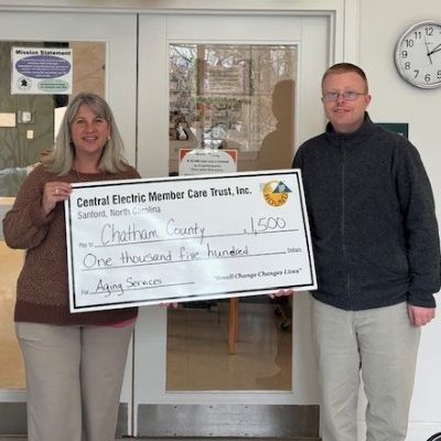 Operation Round Up is a community development program funded by the voluntary contribution of Central Electric members to the Central Electric Member Care Trust, Inc. Charitable donations are made by the Trust Board to worthy projects in the Central Electric service territory (Chatham, Harnett, Lee, and Moore counties). Organizations, groups and charities in these counties are eligible to apply as long as they meet the specific funding guidelines established by the Member Care Trust Board of Directors. Find out more on whether or not your group is a likely candidate by reviewing the Guidelines for Disbursement of Funds.